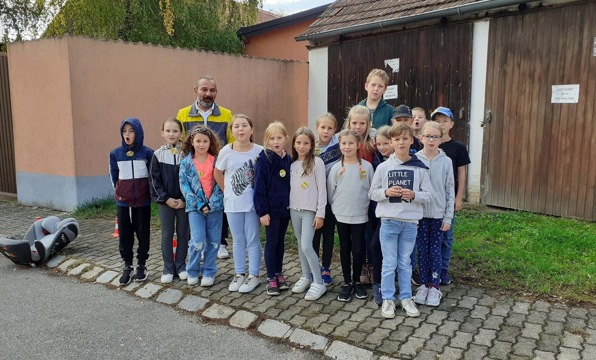Veröffentlicht am 16. September 202227. September 2022Hallo Auto Am 16.9. fand das Mobilitätsprogramm „Hallo Auto“ statt. Die Kinder der 3. Klasse durften selbst Hand bzw. Fuß anlegen und einmal erleben wie lange der Bremsweg eines Autos auf nasser Fahrbahn ist.
