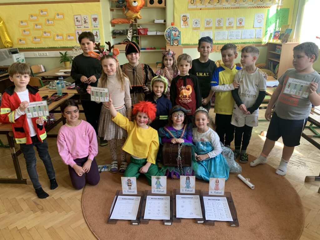 Der Fasching wurde auch bei uns in der Schule gebührend gefeiert. Pumuckl, Clown, Prinzessin und Indianer waren am Faschingsdienstag zu Gast im Klassenzimmer. Mit lustigen Spielen und Musik feierten wir den letzten Tag vor der Fastenzeit. Freilich wurde auch gelernt, jedoch ganz im Zeichen des Faschings. Besonderer Dank gilt dem Elternverein, der wie jedes Jahr Faschingskrapfen für alle Kinder (und Lehrerinnen) gesponsert hat.