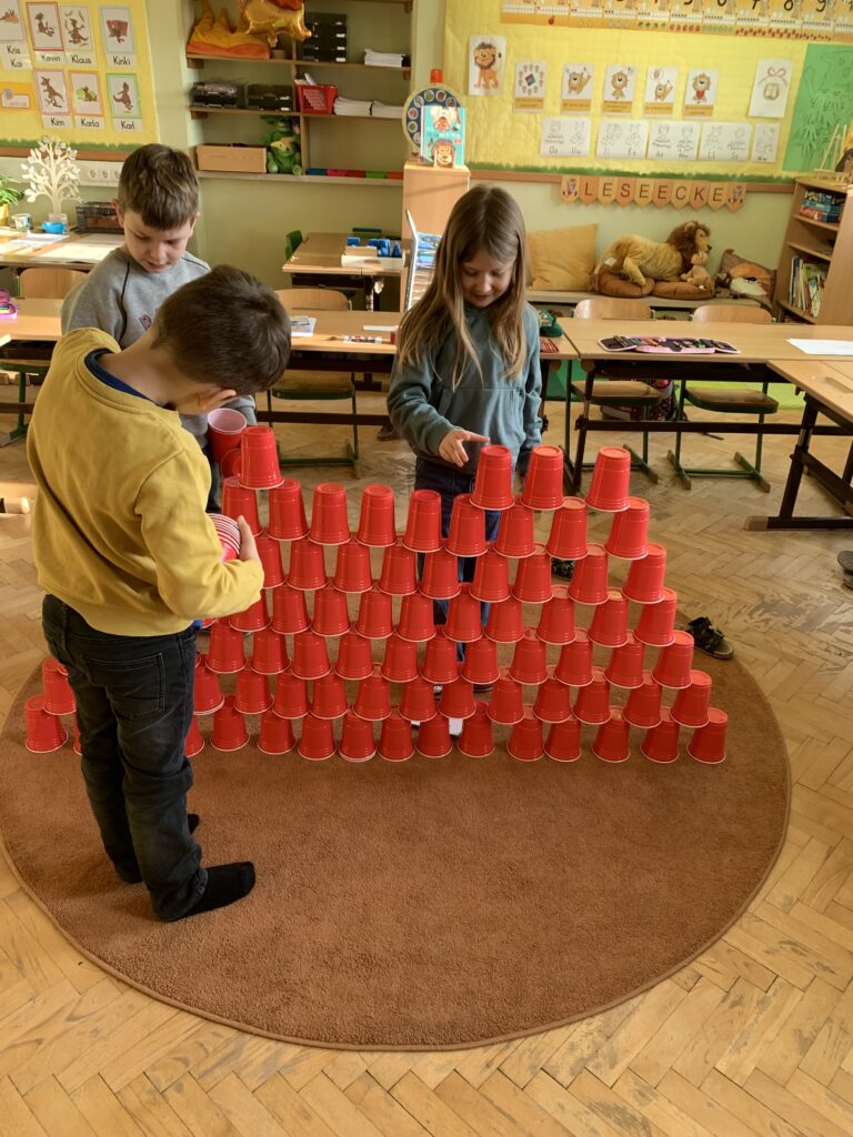 Die erste Klasse hat am 26.2 den 100. Schultag gefeiert. Seit Schulbeginn haben wir die Tage gezählt. Um die Zahl 100 zu begreifen, haben wir 100 Fingerabdrücke gestempelt, 100 Becher gestapelt, usw. Außerdem haben wir eine „100 Tage Schulkindkrone“ gebastelt. Wir freuen uns auf weitere gemeinsame Schultage.