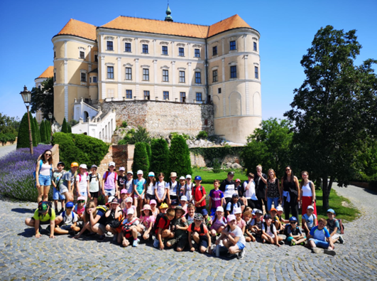 Bei schönem Wetter wanderten wir am 19.06. den Heiligen Berg/ Svatý kopeček in Mikulov hinauf. Am Gipfel des Berges genossen wir den atemberaubenden Ausblick auf das Schloss und die Stadt. Nach einer kurzen Pause marschierten wir durch die Stadt, bis wir beim Schlosskeller ankamen. Dort führte uns unsere Tschechischlehrerin Mag. Katerina Austova durch den Schlosskeller und erzählte die interessante Geschichte rund um das große Fass im Inneren des Kellers. Am Ende des Ausfluges ließen sich die Kinder am Hauptplatz ein köstliches Eis schmecken. Während des gesamten Ausfluges konnten sie viel Wissenswertes über die nahegelegene Grenzstadt Mikulov erfahren.