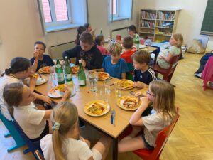 - Schnuppertag der SchulanfängerAm 15.6.2023 waren die zukünftigen SchülerInnen der 1.Klasse zu einem Schnuppertag in unsere Schule eingeladen. Jedes Kindergartenkind wurde mit einem Schulkind aus der 2.und 3.Klasse in eine Gruppe eingeteilt. Dann starteten alle Gruppen eine Rallye durch das Schulhaus. Ein gemeinsamer Tanz rundete das Programm ab.