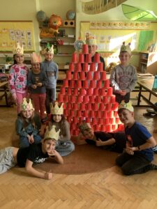 - 100 SchultageDie erste Klasse hat am 26.2 den 100. Schultag gefeiert. Seit Schulbeginn haben wir die Tage gezählt. Um die Zahl 100 zu begreifen, haben wir 100 Fingerabdrücke gestempelt, 100 Becher gestapelt, usw. Außerdem haben wir eine „100 Tage Schulkindkrone“ gebastelt. Wir freuen uns auf weitere gemeinsame Schultage.