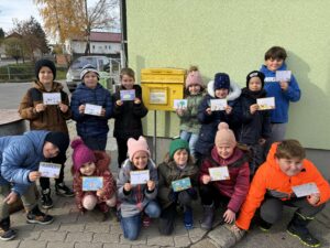 - PostDie 2. Klasse beschäftigte sich in den letzten Wochen in den Sachunterrichtsstunden mit dem Thema Post. Wir lernten über die Geschichte der Post, gestalteten eigene Briefmarken und abschließend schrieb jedes Kind einen eigenen Brief. Die Briefe wurden mit der Wohnadresse der Kinder beschriftet und zum Postkasten gebracht. Jetzt warten alle gespannt, wann die Briefe zuhause …